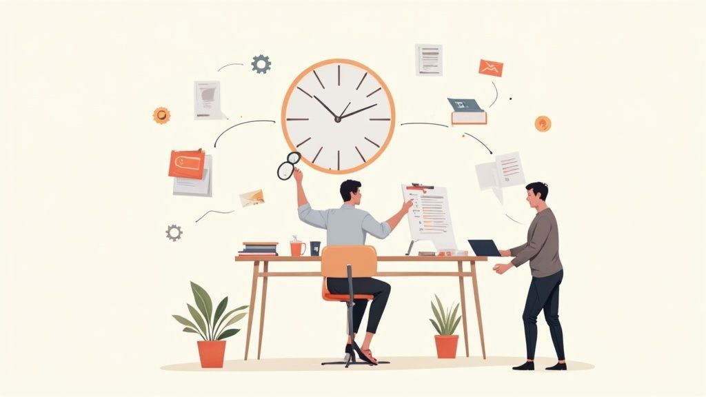 Cette analyse factuelle, c'est votre point de départ. Par exemple, si vous découvrez que la gestion de votre boîte mail vous prend deux heures par jour, vous avez identifié un levier d'action majeur. De la même manière, si votre veille d'informations vous semble sans fin, jetez un œil à notre article sur un exemple de veille concurrentielle pour trouver des pistes et mieux structurer cette activité.